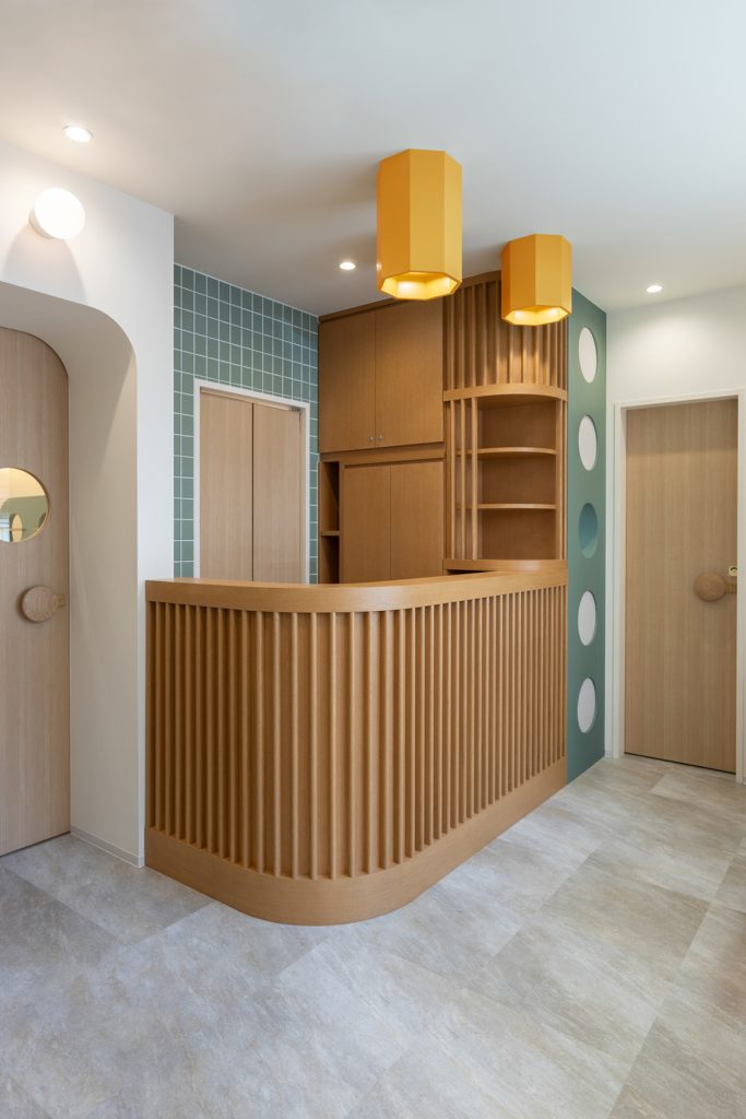 スパンデザインを選んだ理由は、「安易な子供向けデザインではなく、本質的なクリニックらしさを大切にしたかったから」。インテリアや照明にも強いこだわりを持ち、結果として患者・保護者双方から高い評価を得ている。